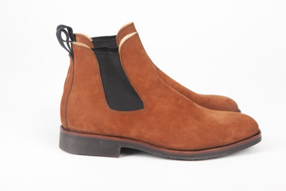 The photo shows the Handmacher model 66 in brown nubuck leather and brown fabric on the sides.