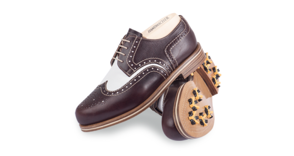 Das Foto zeigt das Handmacher Modell 14 in den Farben Weiß und Braun mit Gummisohle.